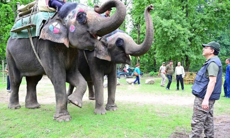 कार्बेट नेशनल पार्क पहुंचे सीएम धामी ने की जंगल सफारी