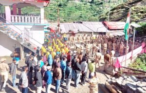 79वें स्वतंत्रता दिवस के अवसर पर आपदा प्रभावित धराली गाँव मे राहत एवं बचाव कार्यों में जुटे कर्मियों के साथ ग्रामीणों ने समेश्वर देवता मंदिर के प्रांगण में जुट कर ध्वजारोहण किया।