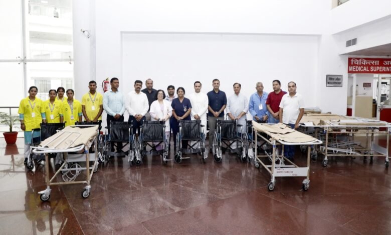 नंदिनी फाउंडेशन ने एम्स को 20 ह्वील चेयर एवं स्ट्रेचर की भेंट