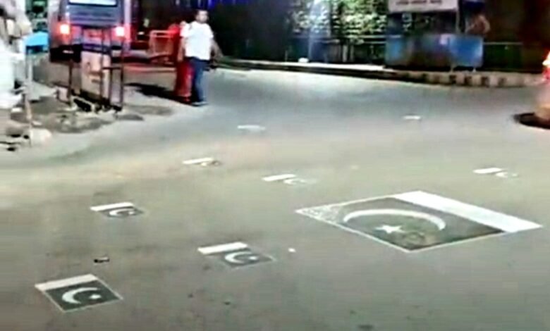 ऋषिकेशकी सड़क पर लगाये गए पाकिस्तान के झंडे।